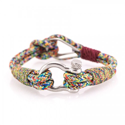 Bratara nautica unisex realizata handmade din materiale de inalta calitate folosite in yachting si sailing - parame (franghii sustinere) si bride (incuietori marinaresti speciale). Acest model de bratara are in plus un element din inox, rezistent la apa, menit sa protejeze sforile nautice impotriva uzurii. Bratara din categoria Thimble este o bratara cu culori vii, ce poate fi purtata la tinute sport si casual.